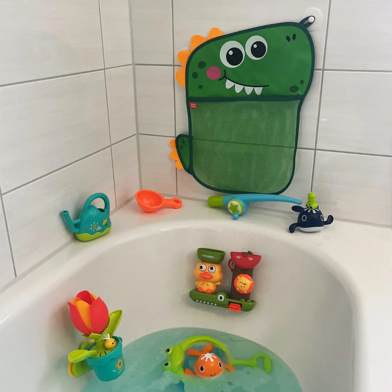 Unsere praktische Aufbewahrungstasche besteht aus einer Kombination aus PVC und Polyester. Diese Materialien sind wasserabweisend, schnelltrocknend und pflegeleicht. Du kannst das Badespielzeug nach dem Spielen einfach verstauen – ohne dass sich Feuchtigkeit staut oder unangenehme Gerüche entstehen. Das sorgt für mehr Ordnung im Bad und macht das Aufräumen ganz einfach - für dich oder dein Kind.