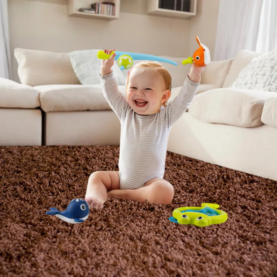Pflege & Reinigung ist kinderleicht: Das Badewannenspielzeug einfach mit warmem Wasser abspülen. Milde Seife oder handelsübliche Reinigungsmittel sind unbedenklich und können bei Bedarf verwendet werden. Bitte vermeide aggressive oder scheuernde Reinigungsmittel, da diese die Oberfläche beschädigen und die Farben angreifen könnten. So bleibt das Spielzeug hygienisch und sicher für dein Kind.